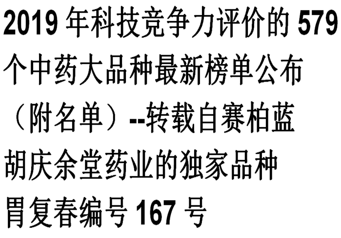 2019年科技竞争力评价的579个中药大品种最新榜单公布(附名单)--转载自赛柏蓝(金年会|jinnianhui药业的独家品种胃复…
